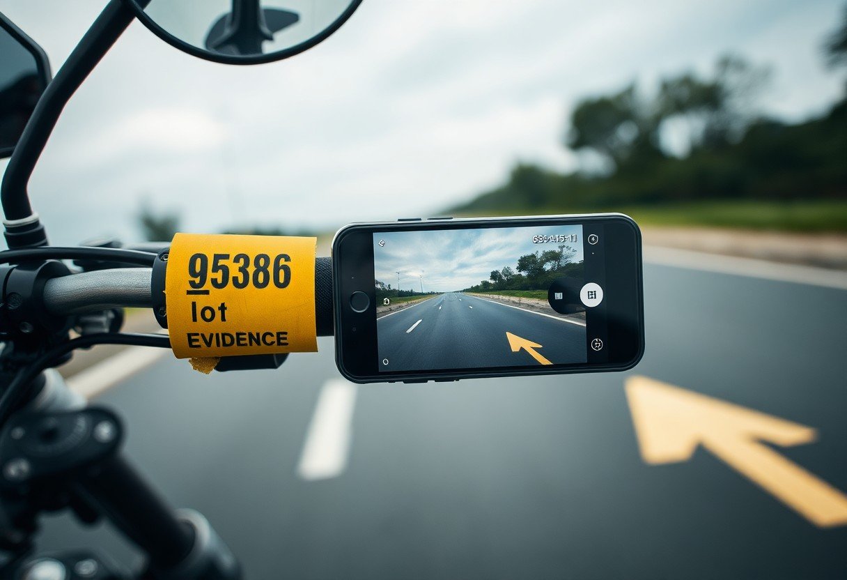 A: Seek medical attention, call law enforcement, take photos of vehicle positions, damage, traffic controls and road conditions, collect names and contact details of witnesses and the other driver, record the other vehicle’s license and insurance info, keep helmets and riding gear intact, avoid admitting fault to insurers, get the police report number, and preserve any video or electronic data from phones or cameras.